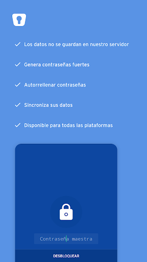 - No guardamos ni tenemos acceso ni conocimiento de su contraseña maestra ni de ninguno de sus datos encriptados