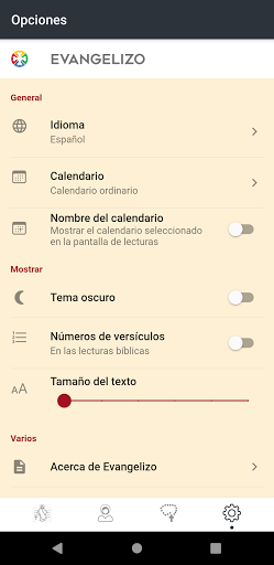 - Tema oscuro (conveniente en ambientes con poca luz, iglesias, para quienes tienen ojos deficientes...)