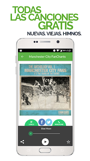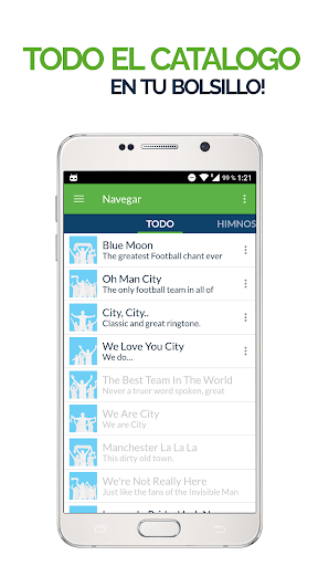 para escuchar en tus parlantes, enviar a amigos y usar como ringtones de fútbol. Reciba notificaciones para escuchar nuevos cánticos de fans de Manchester City y use la opción de grabación para añadir nuevos