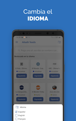 FeedsNews ofrecerá por defecto los periódicos más conocidos de tu país de origen, pero podrás modificarlo en cualquier momento, por lo que si te interesa conocer las noticias de países como Brazil, América, Canadá, Alemania, Francia… siendo residente de España, podrás hacerlo, algo que no sucede con otras Apps del sector, las cuales no te permiten acceder a las noticias si no eres residente de dicho país. Con nuestra completa aplicación de noticias de última hora podrás tener acceso a toda la información privilegiada desde el primer minuto de su publicación.