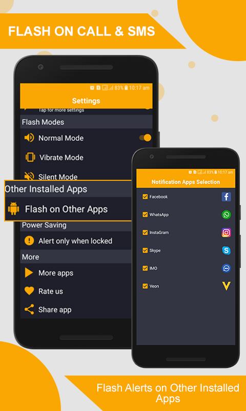 You will set your flashlight alert on call flash alerts easily in mute mode for missed call smart notifications flash alerts and for alert message of your device as well.