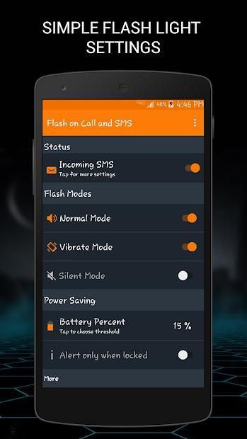 ➣ Ultimate Flash on call and sms is a low battery comsuming app