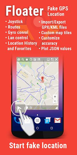 Floater is a fake gps app, that runs from a floating window, allowing easy access to apps or games.