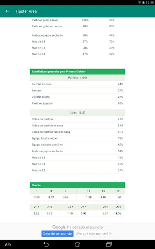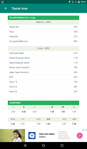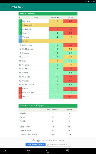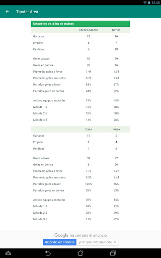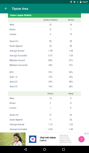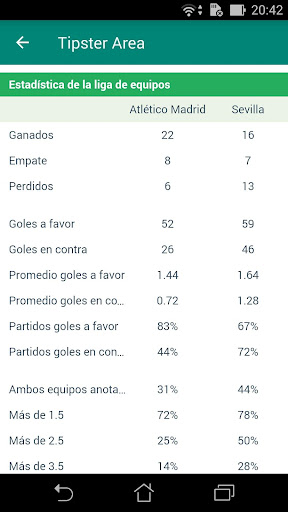 Tipster Area es una aplicación de estadísticas de fútbol que muestra los partidos por fecha y dispone de estadísticas muy detalladas y una pantalla para comparar por indicadores: