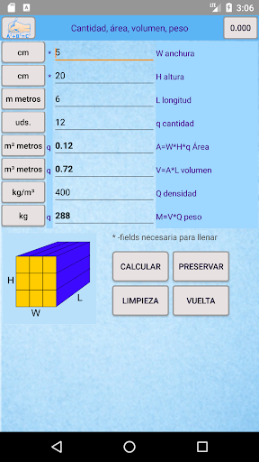 La aplicación se define por cambio dinámico de unidades. Puede rellenar una unidad de mediciones y obtener los resultados en otras unidades seleccionadas. Hay alrededor de 300 unidades posibles. Junto con cálculos más complejos encontrarás un dibujo.