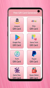 With our online Free Gift Card Generator you can generate Amazon Gift Card, Paypal Gift Card, Spotify Gift Card, GameStop Gift Card, Steam Wallet Gift Card, Google Play Gift Card, Netflix Gift Card, GameTwist Gift Card, PlayStation Gift Card, Ebay Gift Card, iTunes Gift Card, Xbox Gift Card, PSN Gift Card, PS4 Gift Card use our online Gift Card Generators.