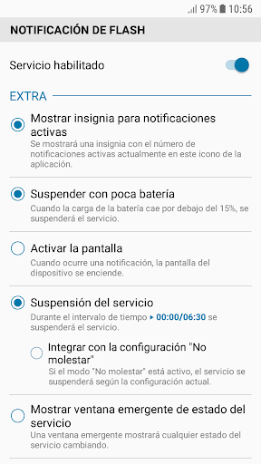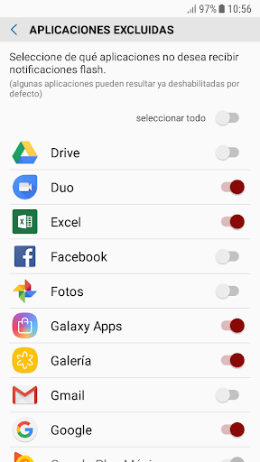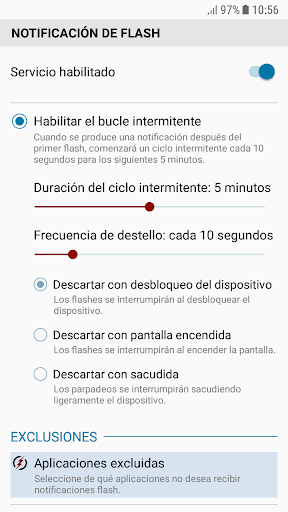 • Lista negra incorporada para evitar flash por notificaciones inútiles o molestas por parte de algunas aplicaciones