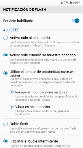 Funciona en todos los dispositivos equipados con un flash frontal, independientemente de si tiene o no el LED de notificación de hardware.