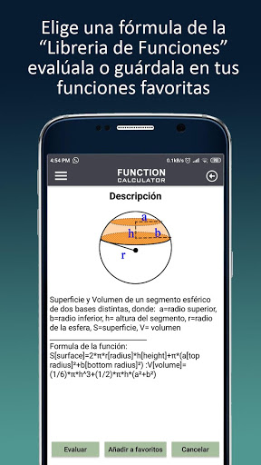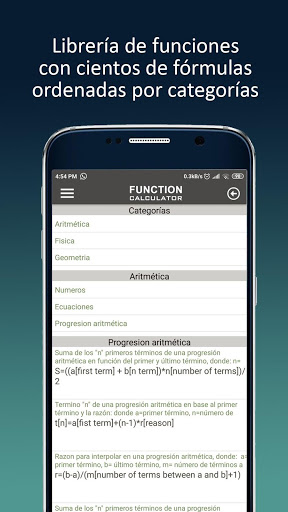 ✔ Una base de datos continuamente actualizada con cientos de funciones y fórmulas en las áreas de física, química, álgebra, matemáticas, geometría, economía, conversiones métricas, etc.