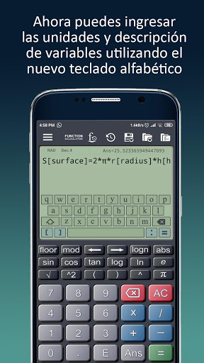 ✔ La calculadora detecta automáticamente cuando una función es ingresada y para evaluarla solamente debe presionarse la tecla "="