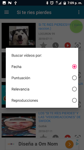 Vídeos de Risa te permite ordenar los resultados por: