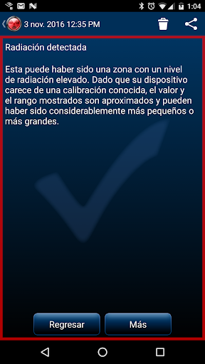 • La monitorización automática utilizará ~1-5% de su batería, pero puede advertirle de la radiación incluso cuando no esté utilizando la aplicación.