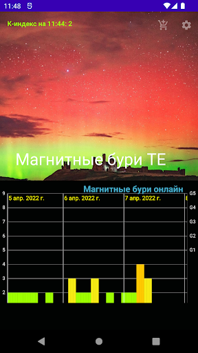 La aplicación presenta datos geomagnéticos actuales y datos sobre flashes al sol, así como el pronóstico de tormentas geomagnéticas durante tres días y veintisiete días.