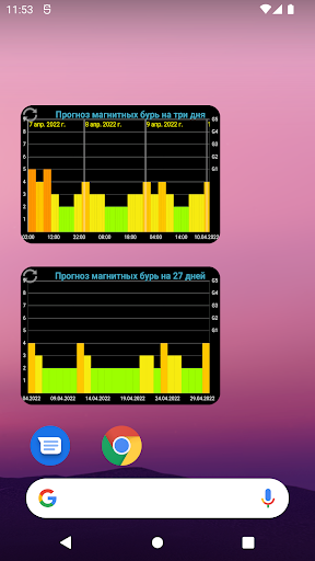 Los cuatro gráficos están disponibles como widgets, y también hay un widget que muestra el índice geomagnético actual en una escala de 0 a 9.