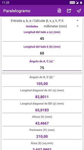 Calculadora de geometría contiene 26 calculadoras, 148 tipos de cálculos y 783 cálculos.