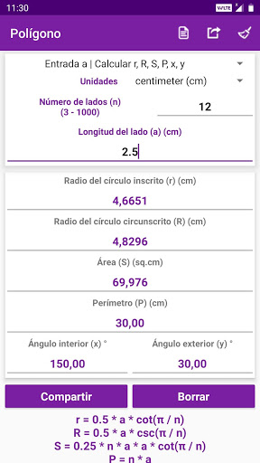 • Varios tipos de entradas y cálculos para todas las formas y sólidos.