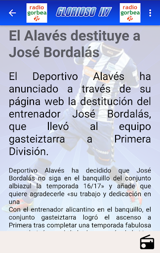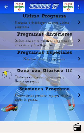 Por supuesto, podréis escuchar Radio Gorbea desde esta aplicación, en especial los lunes y viernes, que es cuando se emite Glorioso 117.
