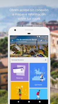 Google Trips agrupa todas tus reservas de Gmail automáticamente y las organiza en viajes. Cada viaje contiene itinerarios, actividades, recomendaciones de comida y bebida, y mucho más.