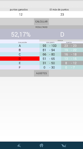La calculadora le permite calcular rápidamente la evaluación calificación de la prueba después de la administración de puntos obtenidos por el estudiante y la máxima cantidad de puntos a ganar.