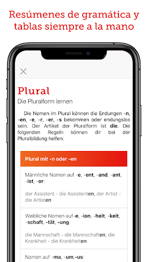 Aprende alemán de verdad con Grammatisch. La aplicación tiene cientos de ejercicios, así como resúmenes, tablas y listas de los temas clave de la gramática alemana. No necesita tomar exámenes de nivelación, solo elija cualquier tema y comience a aprenderlo. Puede resolver docenas de ejercicios seguidos para memorizar conceptos y reglas gramaticales en poco tiempo. Cuando finaliza una sesión de ejercicios, puede verificar su puntaje y una corrección detallada de sus respuestas.