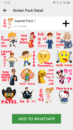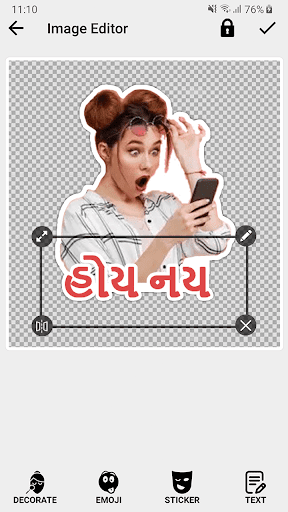 Crea tus propias pegatinas de fotos con texto Gujarati y comparte con tus amigos y familiares en WhatsApp.