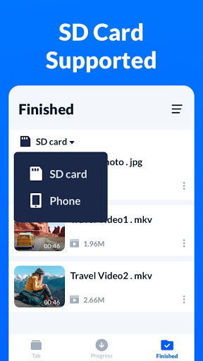 Puede descargar varios videos simultáneamente; Declaraciones de pausa y reanudación; Descargar videos en el fondo; Cambia la ubicación de descarga. ¡Qué administrador de descarga inteligente!