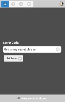 Set your secret key/phrase and create contacts associated with this secret. You can use as many secret codes as you wish. The contacts associated under secret key can be accessed only when this code was sent.