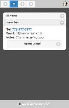 With Hidden Secret Contact List app you can organize your contacts by using different secret keys, like work related contacts, business contacts, family contacts, or contacts that you want to hide from your spousal or kids.