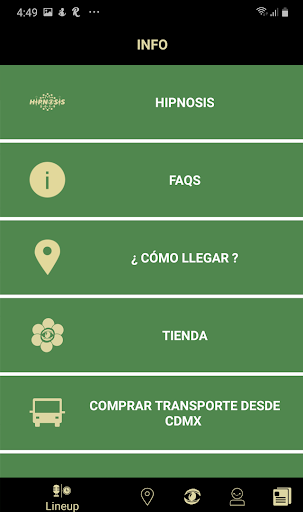 Éste año Festival Hipnosis 2019 tiene una APP con Features para que no te pierdas a tus Shows Favoritos y conozcas todo el Line up, también puedes acceder al Mapa súper rápido y ubicar todo lo que Hipnosis tiene para ti y además puedes conocer todos los Servicios que hay en el Festival. No dudes en bajarla y vive tu experiencia al máximo este 26 de Octubre del 2019.