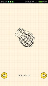 Draw Weapons is an app that teaches you how to draw weapons and guns step by step.