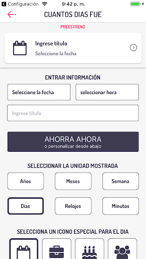- Días desde la primera cita, Compromiso, Matrimonio y muchos más aniversarios.