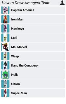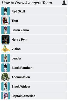 Let’s draw your favorite item from Avengers Team Characters step by step in a new application for mobile drawing! just take a paper and a pencil, choose the characters you like. It is very easy to use.