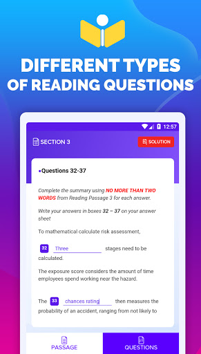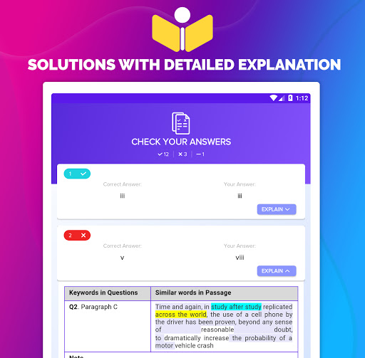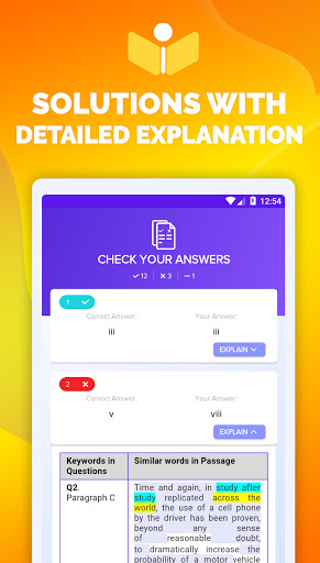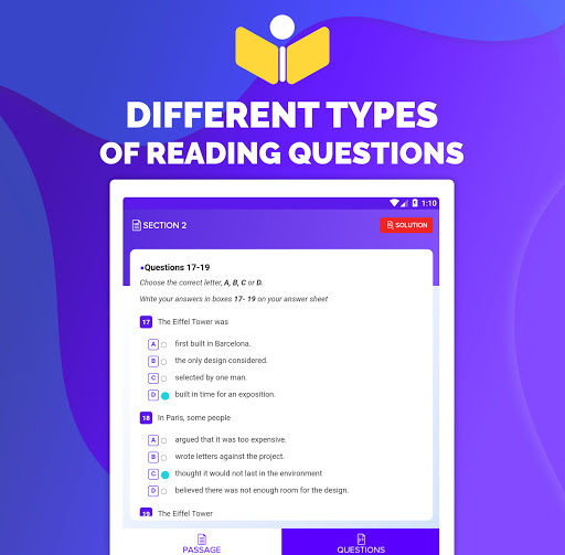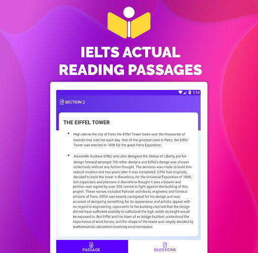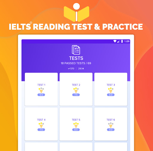 La aplicación de prueba de lectura de IELTS hace que sea fácil mejorar la puntuación de la banda de lectura de IELTS para sus usuarios que apuntan a una puntuación