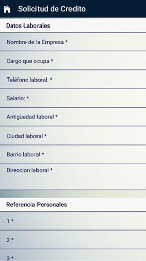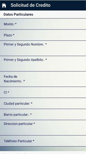 Aplicación para solicitud de crédito. Atráves de esta aplicación, usted accesor de préstamo personal, puede llenar los datos de su cliente de forma segura y eficaz.