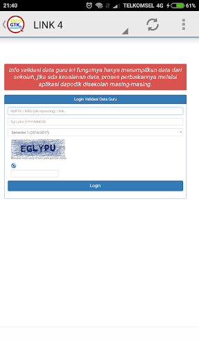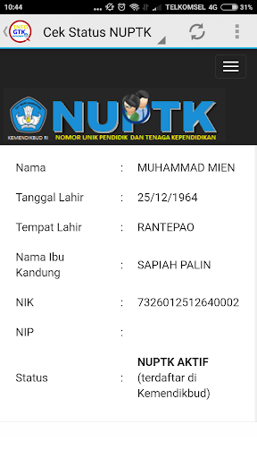 Monitoree la validez de los datos que afecta la asignación profesional de educadores o maestros. Los beneficios se aplican a los maestros que tienen un decreto de la asignación profesional o SKTP.> Toda la información que enviamos en esta aplicación se publica con buenos objetivos y solo para obtener información en general. //info.gtk.kemdikbud.go.id/