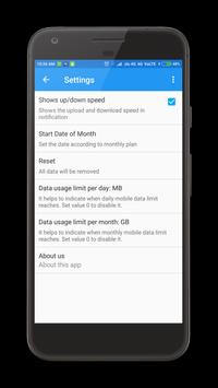 Set daily and monthly data limit as per user internet pack from settings, once limit reaches notification will be shown.