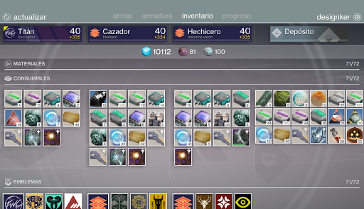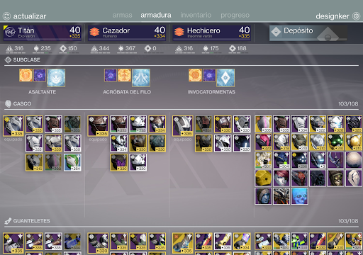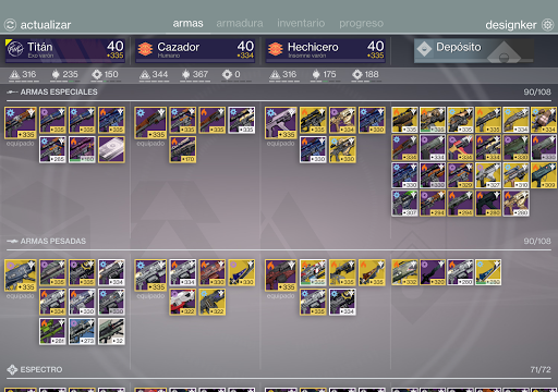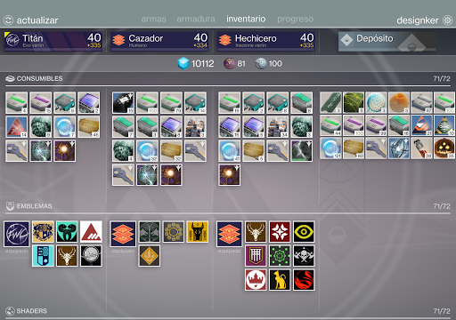 Accede el inventario de tu guardián en Destiny 2, incluyendo su armadura, armas, y depósito.