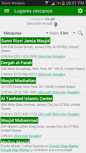 Lugares cercanos (Mezquitas, Hala Tiendas, Restaurantes Halal)