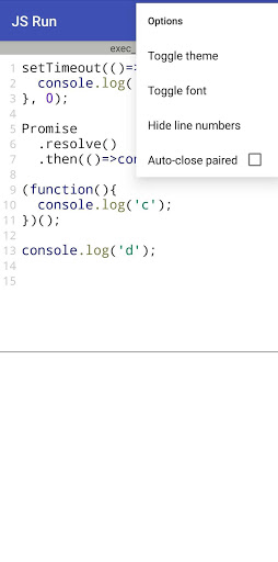 Aplicación simple y ligera para la codificación de JavaScript y la ejecución de código.