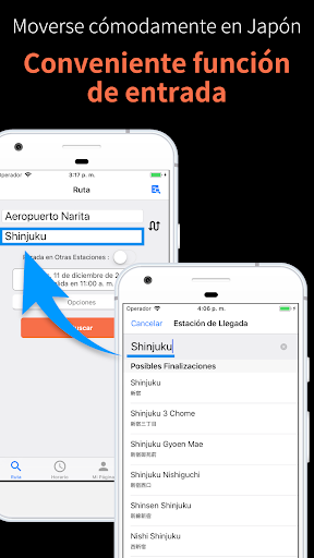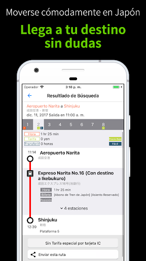 Te mostrará la ruta o cómo trasladarse por tren o avión en Japón.