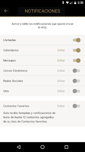 • Seleccione de qué aplicaciones desea recibir notificaciones en su reloj inteligente y seleccione la intensidad de la vibración.
