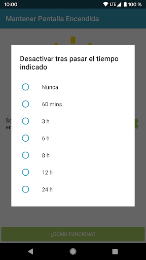 - En el momento en el que ya no desees tener la pantalla activada y quieras volver al tiempo de espera normal de tu smartphone, entra de nuevo en la app y desactívalo.