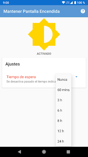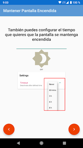 - Si no deseas tener la pantalla encendida de manera ilimitada, pero quieres configurar un tiempo de apagado de tu pantalla, también podrás hacerlo con esta app.