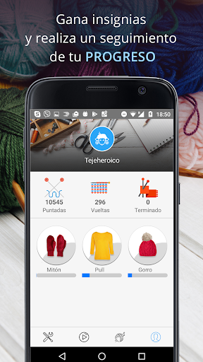*** Gana insignias y realiza un seguimiento de tu progreso. ¡Puedes ver en cualquier momento cuántos puntos y vueltas has tejido!
