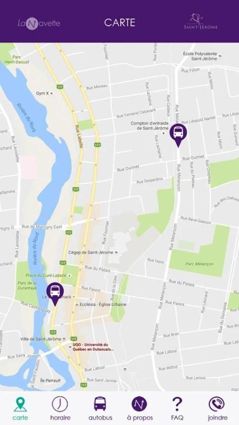To accommodate CEGEP students and the University as well as workers from the city center, the city has set up a fully free shuttle pilot (parking and transport). This application can track the position of the shuttle in real time.