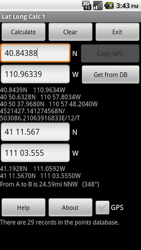 Lat Long Calc es una herramienta de GPS que convierte las coordenadas de latitud / longitud a diferentes formatos y calcula la distancia y la dirección entre dos puntos. Esta es la versión gratuita. Para obtener más características, busque Lat Long CALC PRO.