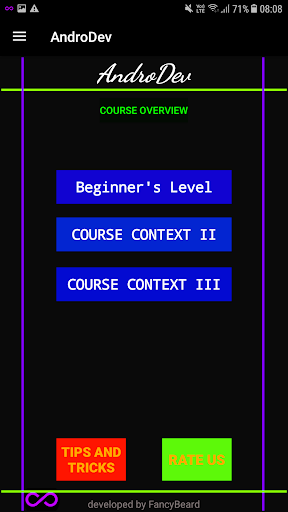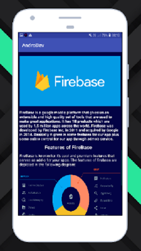 you might as well install this application on your device. It has almost all the tutorials that you will need as a beginner or some not much known developer to develop apps that will change the shape of the world. AndroDev has Tutorials, Guides, Examples, and source codes that will enhance your Android learning knowledge and help you becoming a great developer. The course content in AndroDev is divided into 3 components-