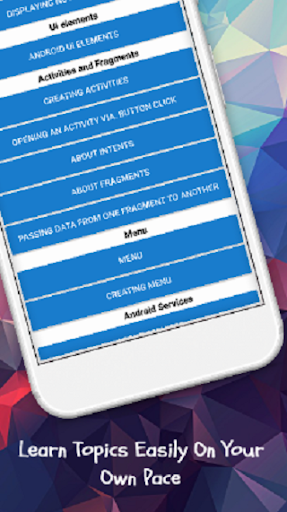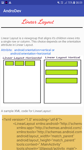 This app also have some tips to optimize your application's ASO and publishing it in google play store. It has theory, examples of common android elements and some source codes for direct implementation for understanding purposes to help you in learning of android development and become a great android developer.