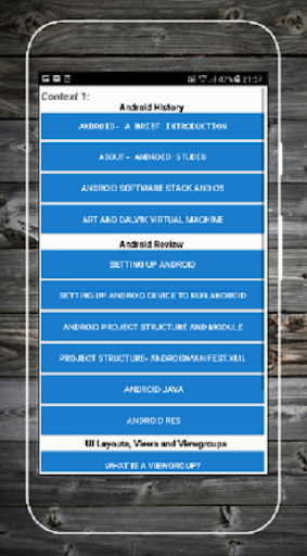Context 1: This section contains basic intro and learning components of android development and understanding how android development actually works. It also has necessary useful information about IDE for developing android applications and it's components. Concepts covered theoratically in this section are-