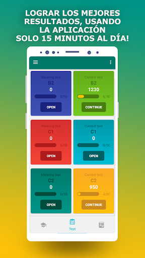 En la aplicación encontrarás muchas pruebas de diferentes niveles de complejidad, de paso, controlarás tu progreso en el dominio de material nuevo.
